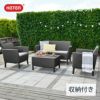 素材:ソファ・アームチェア・テーブル/ポリプロピレン、クッションカバー/アクリル、スポンジ/ポリウレタン・ポリエステル