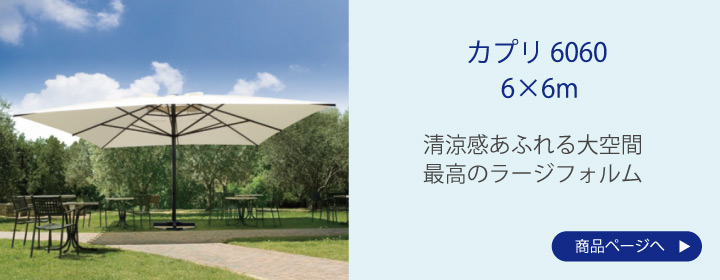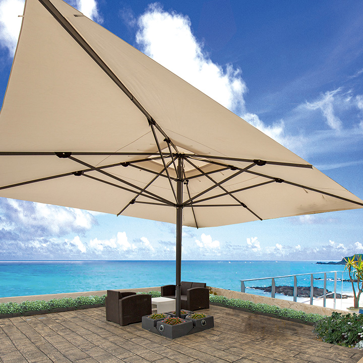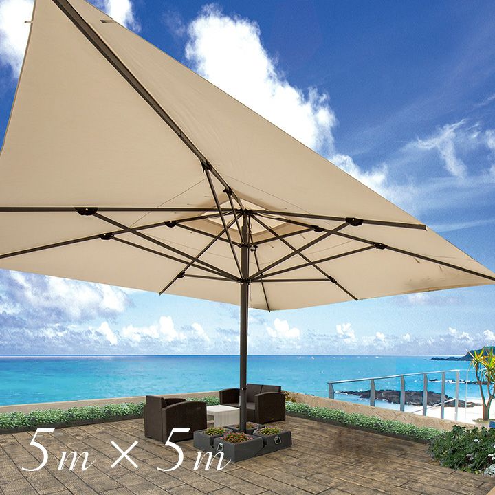 タテ・ヨコのキャンパス部が最大5mの開放的な大型パラソルです。