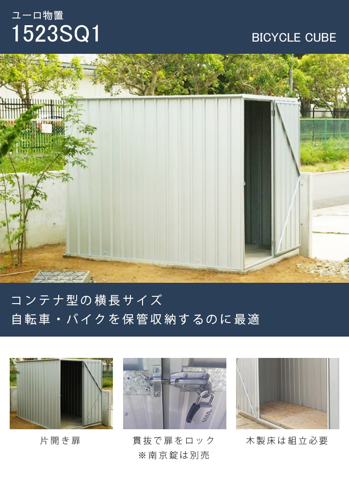 こちらは「物置本体(1523SQ1)」+「木製床キット」+「木製床用アンカー」のセット販売ページです。コンクリート基礎を製作いただき、コンクリートを床にされる場合には別ページからご注文下さい。