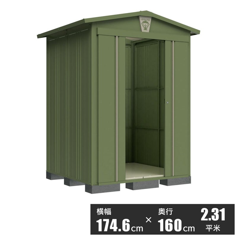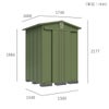物置本体カラーはガーデングリーン、屋根はタウングレー、床はムーンホワイト。落ち着きを感じさせる配色です。