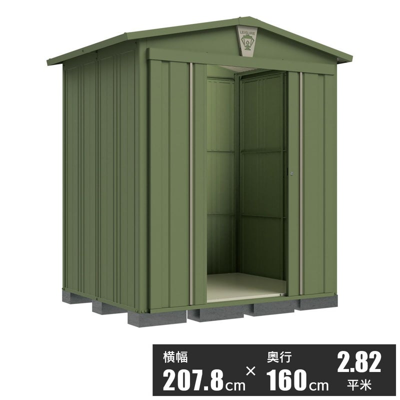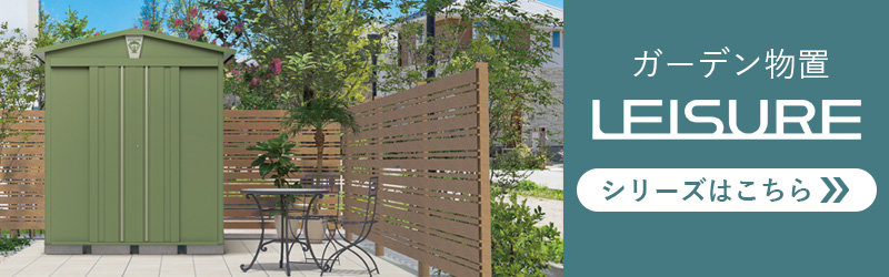 物置本体カラーはガーデングリーン、屋根はタウングレー、床はムーンホワイト。落ち着きを感じさせる配色です。