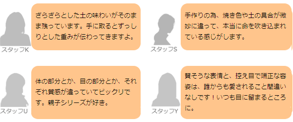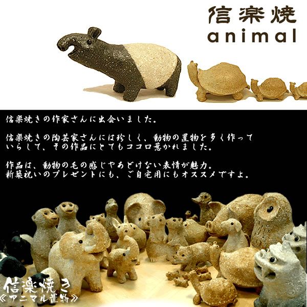 ごつごつした手触りが魅力の信楽焼の動物シリーズです。 目はクルクルっと丸くて光ってて、とってもキュート。