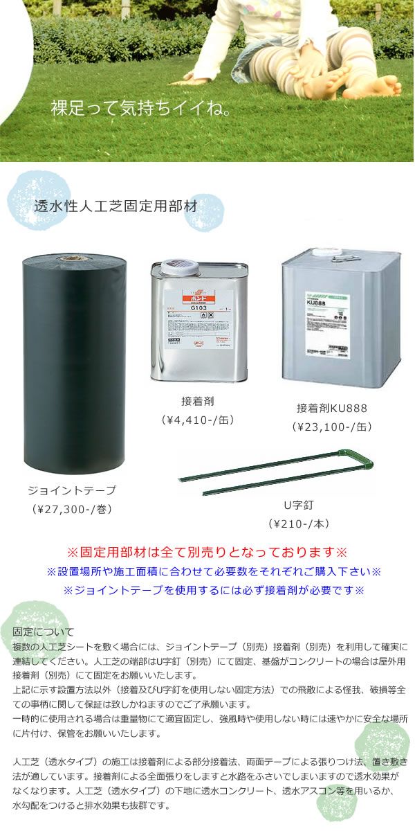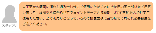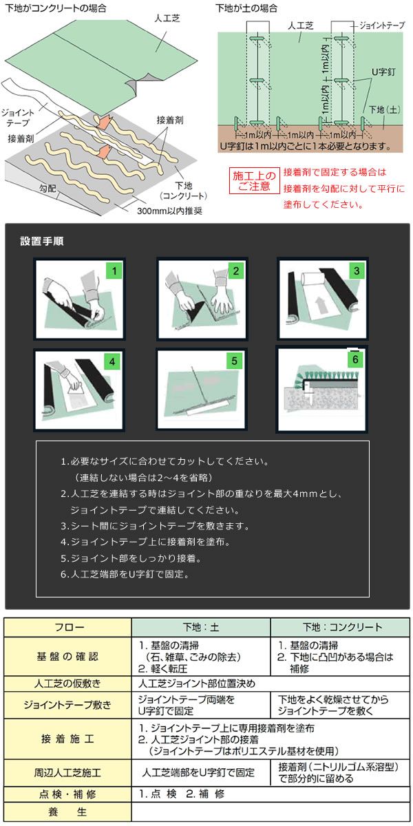 ※複数枚の人工芝を連結される場合は別売りのターポリンシートと接着剤の併用をお願いいたします。