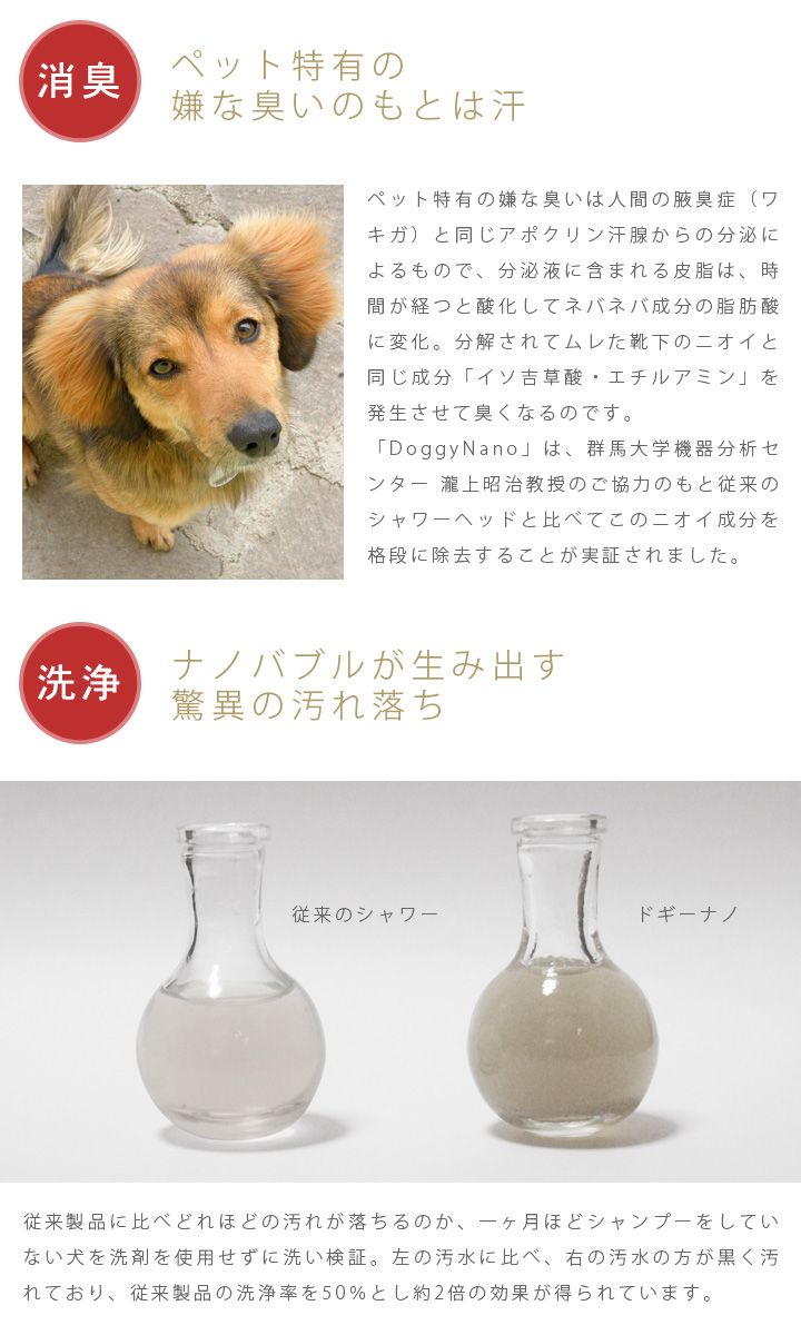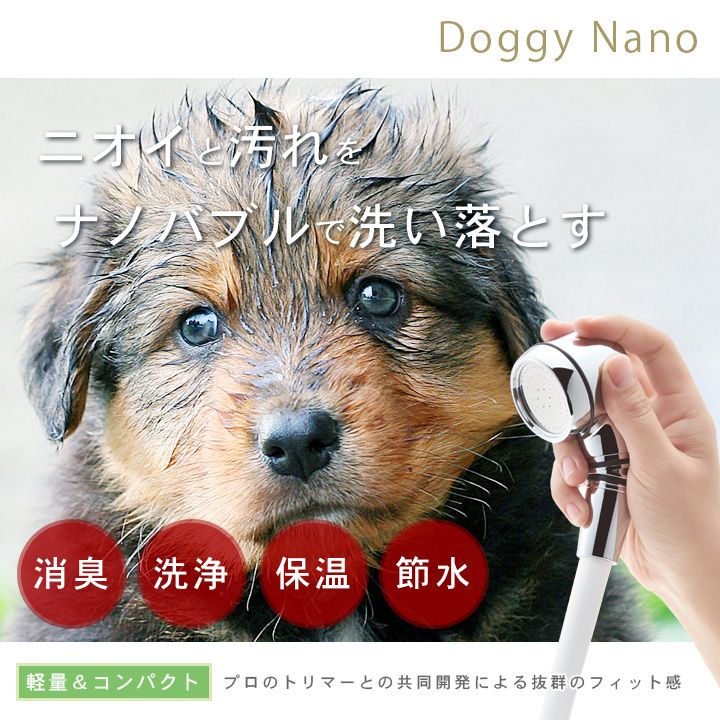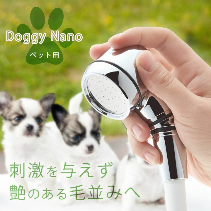 「DoggyNano」は、浴室のシャワーヘッドを付け替えて使用するペット専用のシャワーヘッドです。