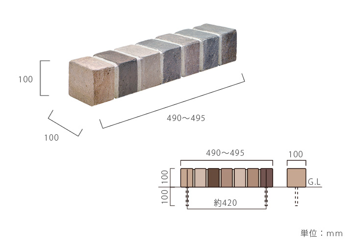 サイズ:W490~495×D100×H100mm