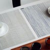 細いボーダー柄と細かなシェブロン柄の組み合わせが特徴のランチョンマット。モダンな色とシンプルなデザインは様々なお料理に合わせることができます。