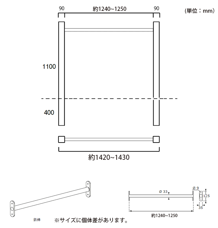 耐荷重:100kg/本(鉄棒)