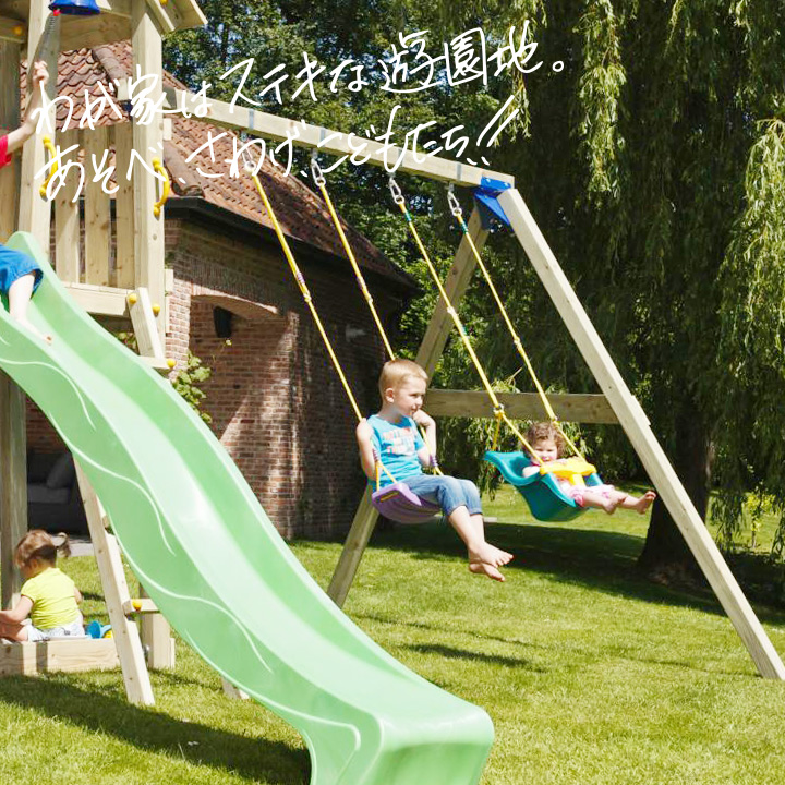 いつまでも乗っていたいブランコ。自然と笑顔になりますね。大人も子供も楽しめる人気の、そしておすすめのアイテムです。子供の成長や性格に合わせて、ブランコや縄ばしご、ブイボールにモンキースウィングなどお好みのものを組み合わせてくださいね。
