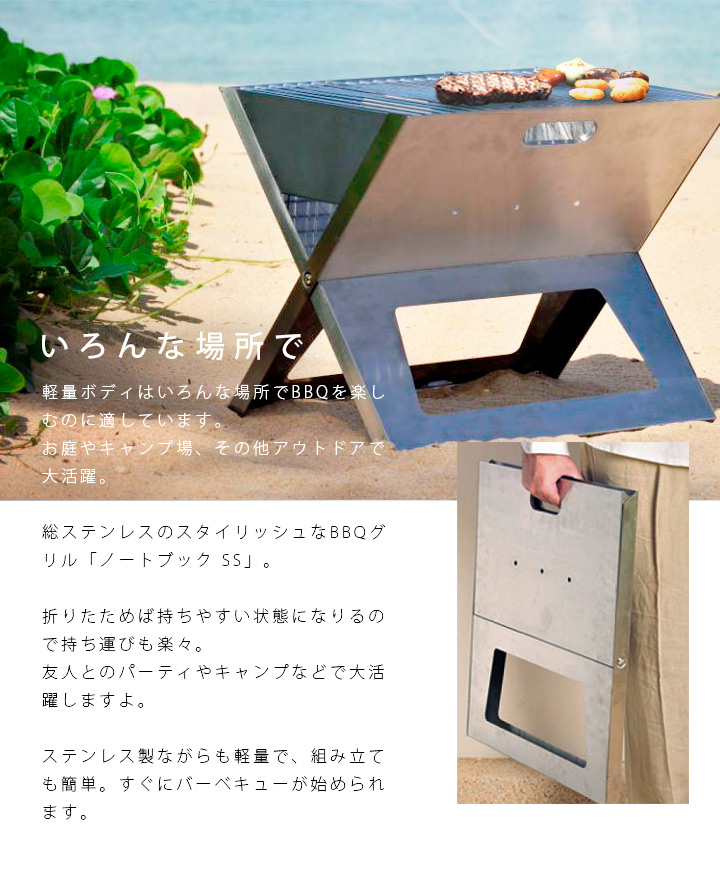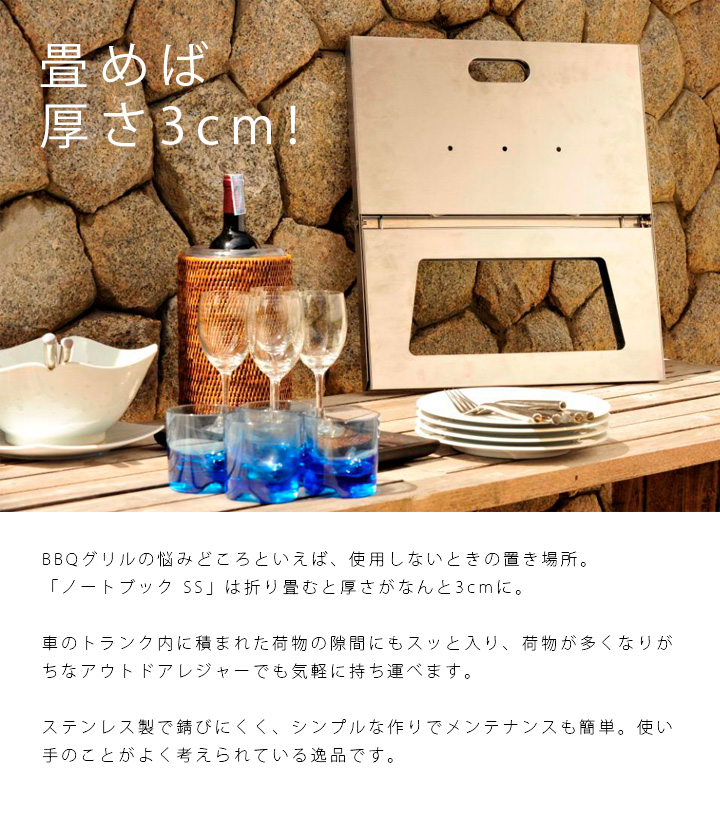 無駄のないスタイリッシュなフォルムが特徴の折り畳み式BBQグリル「ノートブック SS」