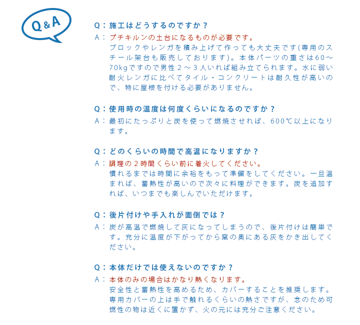 ※本体周囲をレンガ等で囲むことは可能です。