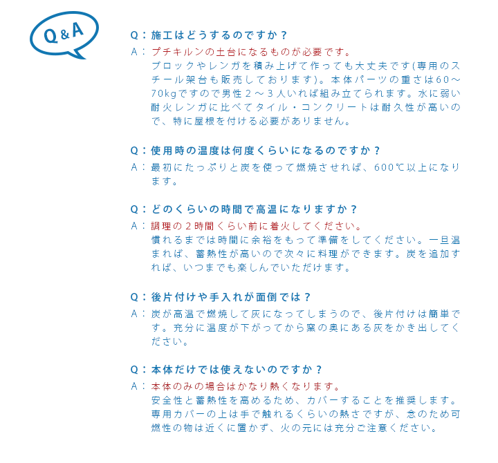 また、薪に比べ少煙な炭を使用するので住宅地での使用も大丈夫です。