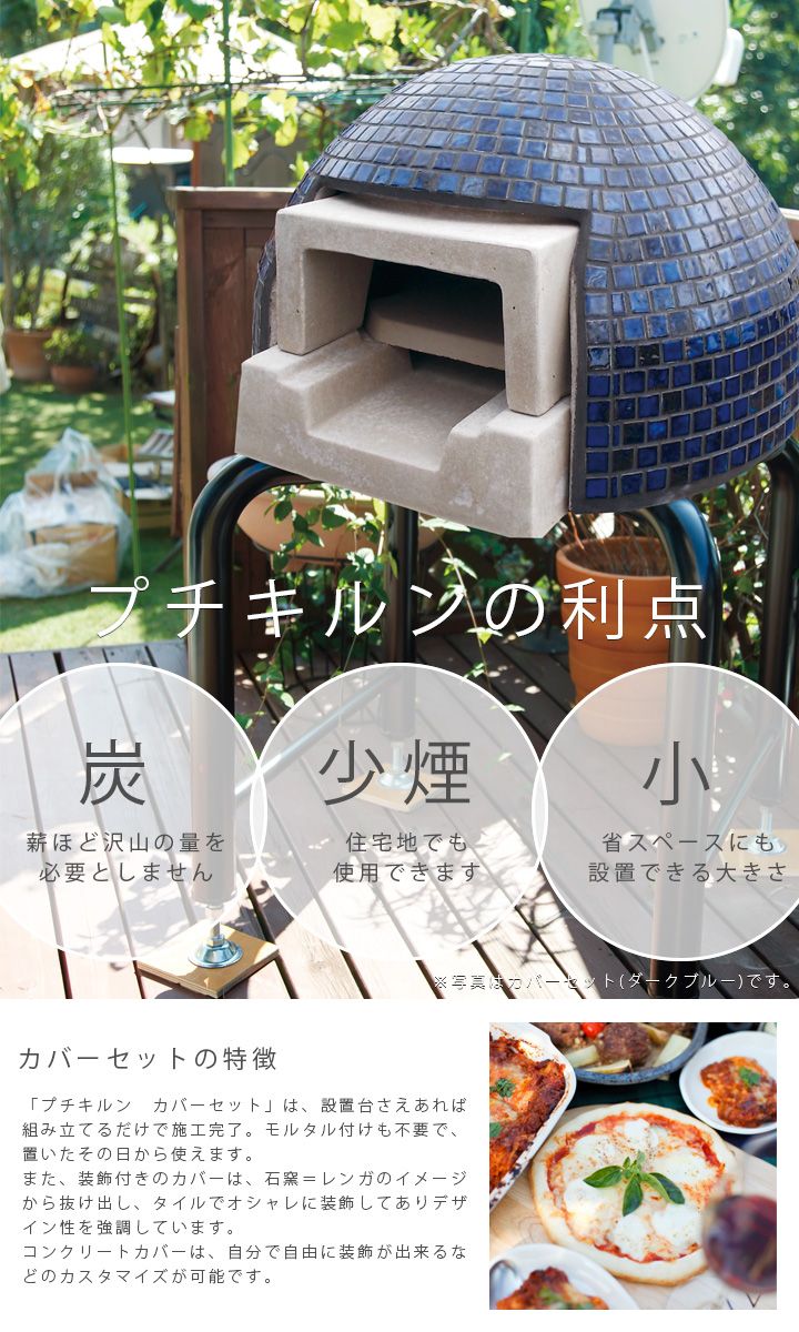 ピザ窯, 窯 バーベキュー グリル プチドーム BBQ ガーデングリル ドーム型ピザ窯 「家庭用石窯 プチキルン カバーセット ※本体+装飾カバー」