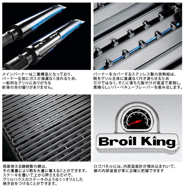 ブロイルキング(Broil king)ガスグリルは点火からわずか数分で調理が可能。
