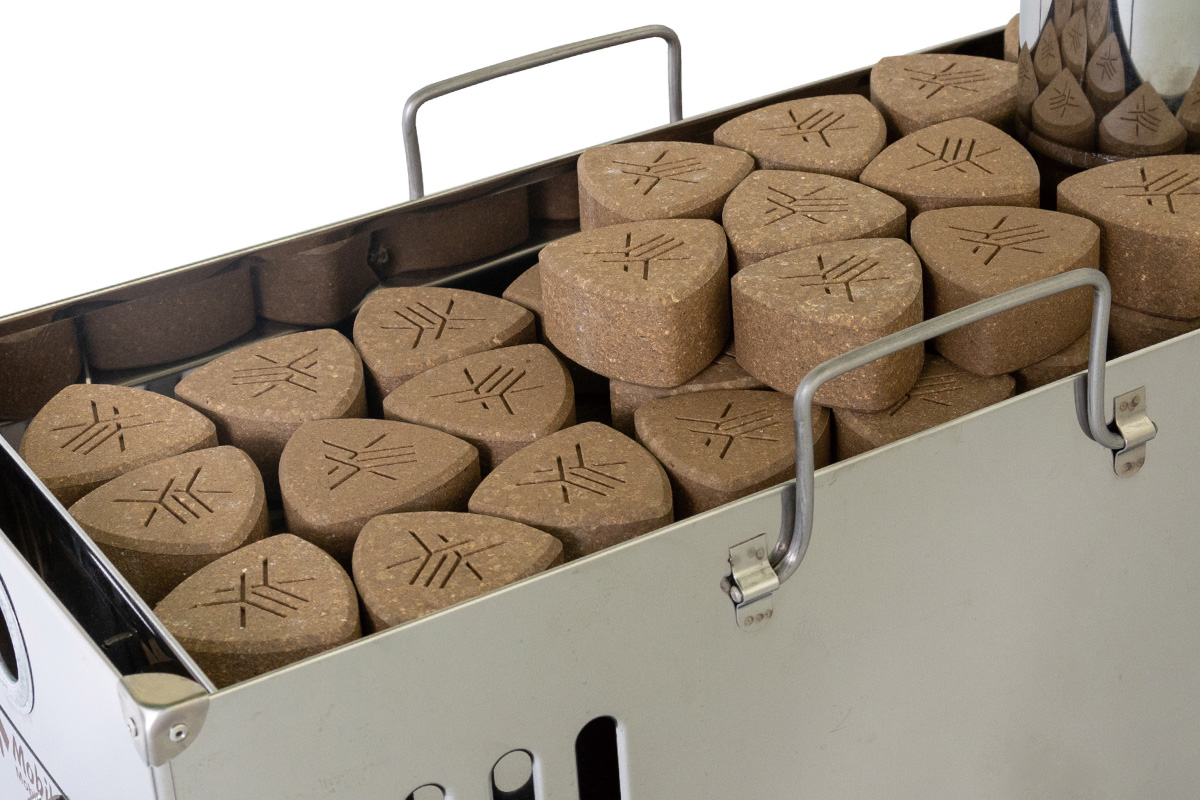 ファイヤーサイドのサウナストーンは100%天然由来の素材を用いて日本国内で製造し、資源の有効活用を目指し、再生レンガ素材であるシャモットを使用。