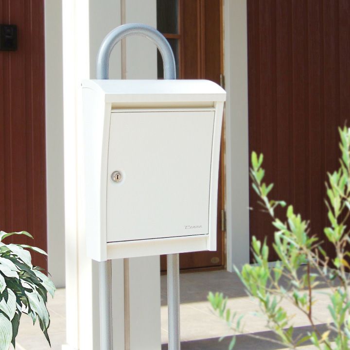 シンプルなデザインかと思いきや、サイドから見ると緩やかなカーブでA4サイズ対応ながら圧迫感のないスマートなデザイン。またエポキシ塗装仕上げで錆に強く、マットな質感が同価格帯のポストよりワンランク上の品質を感じさせます。上入れ前出し鍵付。