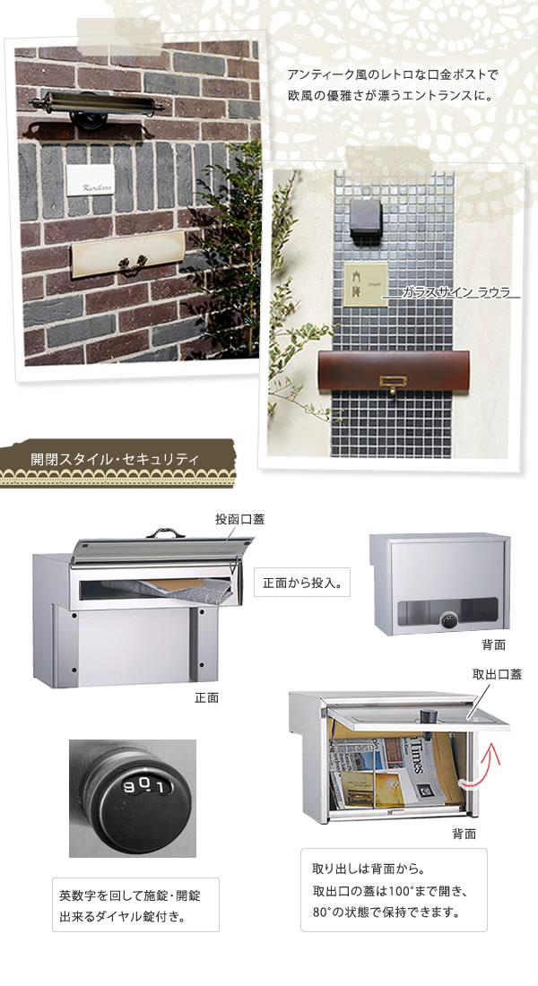 ポスト ステンレス 真鍮 アルミ 緑 ベージュ 茶色 埋め込み 口金ポスト「ROUGE ルージュ マカラ」 05/15タイプ ※ダイヤル錠 郵便受け 壁埋込