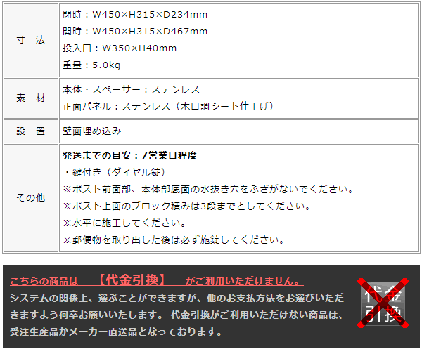 送料無料代引不可メーカー直送時間指定不可A4対応投函後ろ出し鍵付き鍵無し壁埋込み