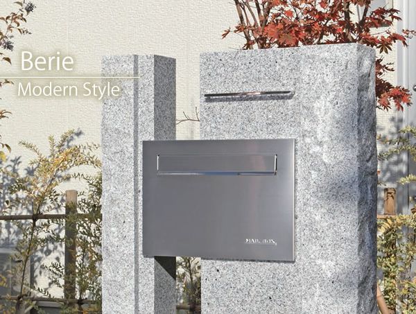 和モダンにも似合う埋め込み郵便ポスト「ベリエサスウッディ:ステンレスシルバー」シルバーが映えるスタイリッシュ郵便受け