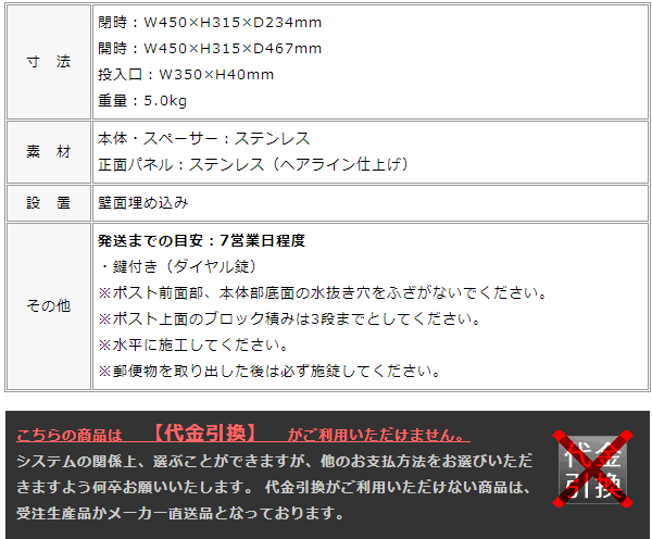 送料無料代引不可メーカー直送時間指定不可A4対応投函後ろ出し鍵付き鍵無し壁埋込み