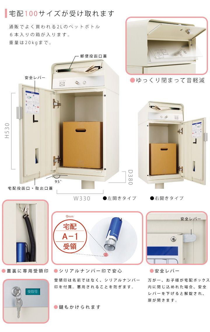 留守時にも受け取り安心なのが、大容量の「ケイト」です。