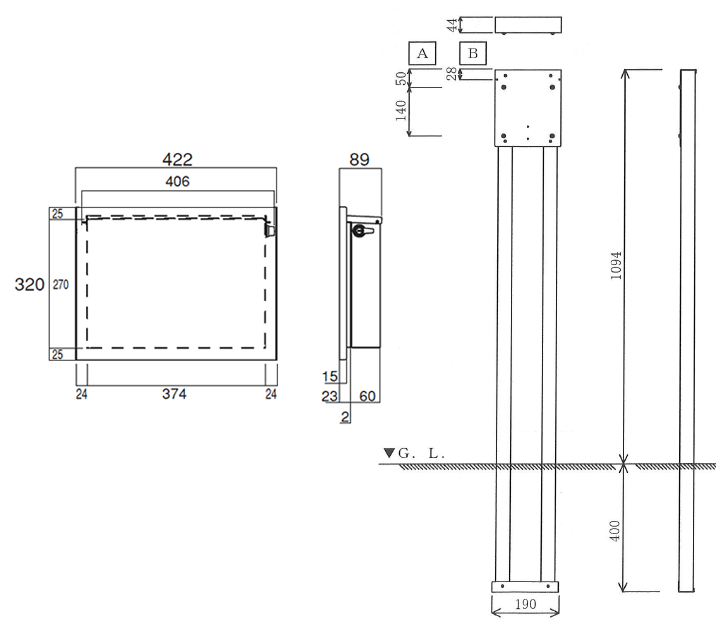 サイズ:W178×H1494(埋設部含む)×D44mm