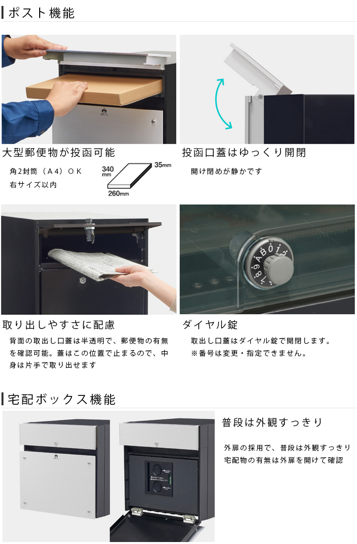 COMBOには、ポストも付いていますので、日常的に届くものは全てこの1台に集まりますよ。
