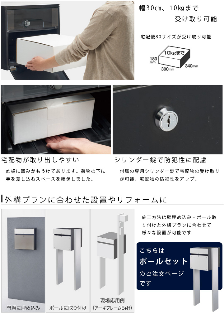 「コンボ エフ」は、モダンな住宅にさりげなく似合う宅配ボックスになりました。