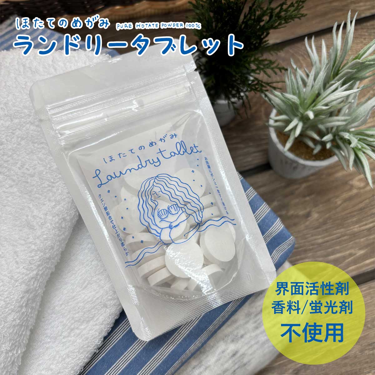 たっぷりのカルシウムやミネラルを含んだほたての殻を使ったランドリータブレット。