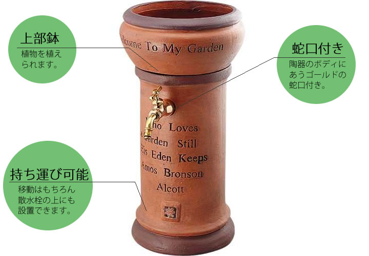 将来水栓柱として使わなくなっても、上部はお洒落なテラコッタ風植木鉢としてご使用いただけます。