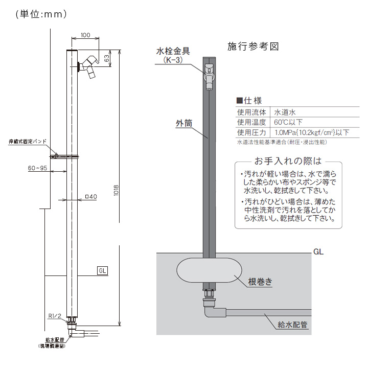 ※寒冷地には対応しておりません。凍結の恐れがある場合には必ず水抜栓を設置してください。