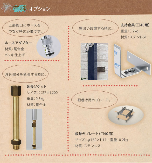 サイズ:本体/40角×H1018mm、フラワーハンドル/W65×D100×H110mm