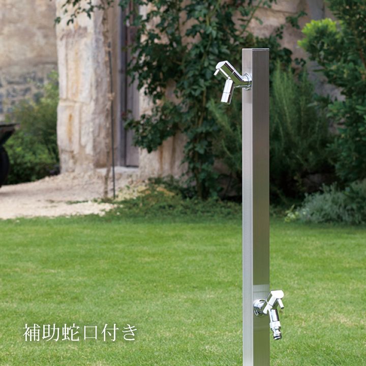 柱の下部にはホースアダプター付きの補助蛇口も付いてきます。散水用のホースを繋ぐのにとっても便利!