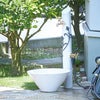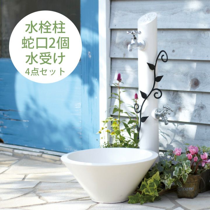 素材:水栓柱・ガーデンパン/GRC(ガラス繊維強化セメント)製・アクリルウレタン樹脂塗装、飾り/アルミ製粉体焼付塗装、メイン・ホース接続水栓/青銅
