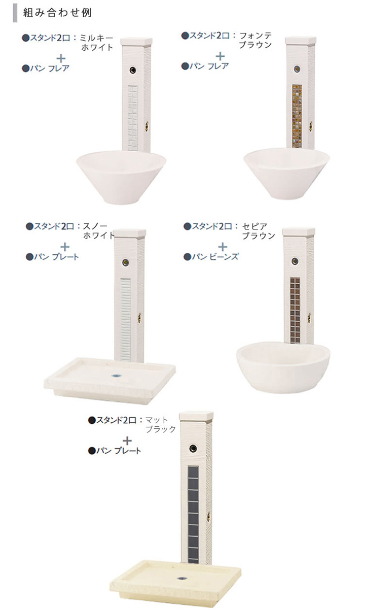 水周り GRC セメント タイル 青 白 緑 茶 UN立水栓 「ファミエンテスタンド 2口蛇口タイプ (ガーデンパン付き)」