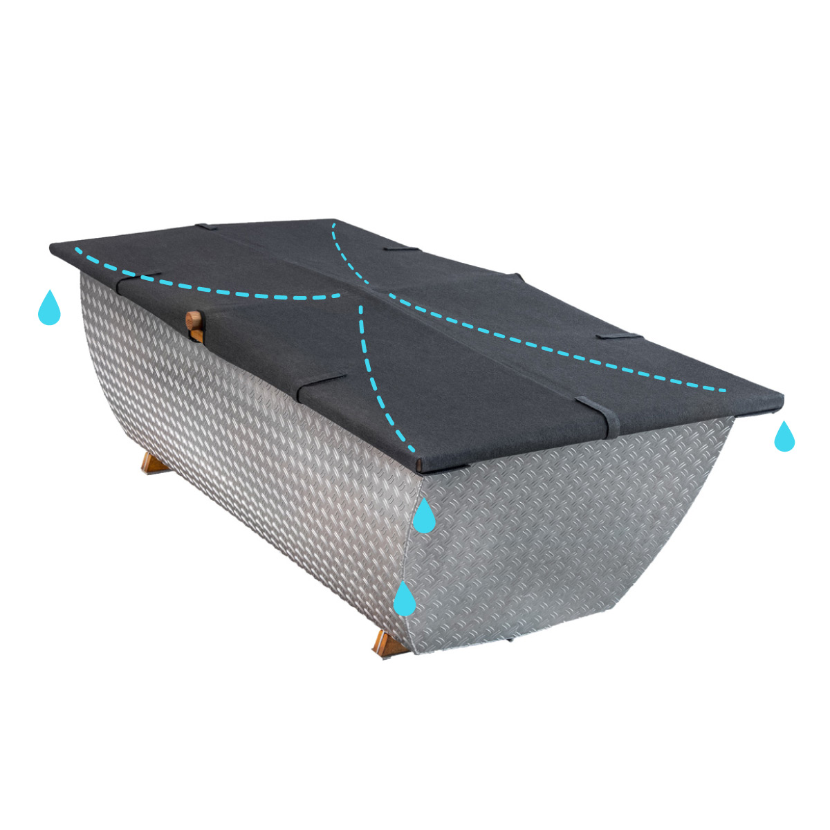 落ち葉や虫等の侵入防止に最適で撥水・防汚・防カビ性に優れたマリンテキスタイル製です。