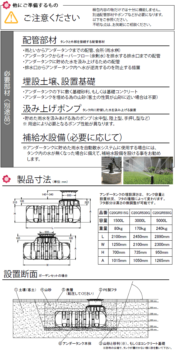 4. 【地下埋設型 雨水タンク】アンダータンク 3000L <ガーデンセット>