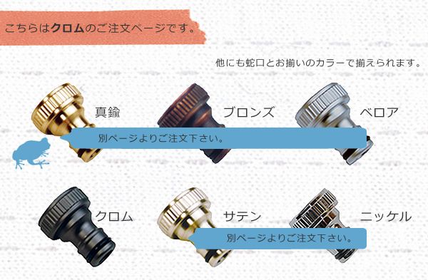 蛇口 ホース 接続 ニップル カラン 立水栓 ガーデン 庭 水栓柱 タップ フォーセット 外 「アニマル蛇口&スタンダード蛇口 専用ホースアダプター<クロム>」