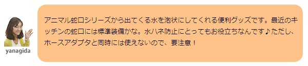 水の飛び散りを軽減し、広がらず優しく水が出てくれます。子供の手洗いにも便利!ホースを取り付けないなら、蛇口には必須アイテム。