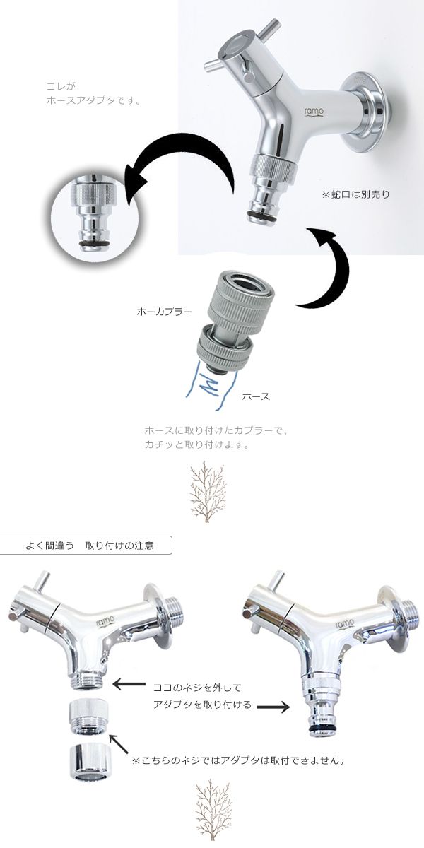 ラモ蛇口専用のホース接続アダプターとカプラーのセットです。