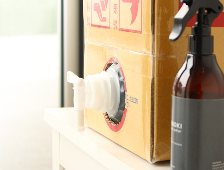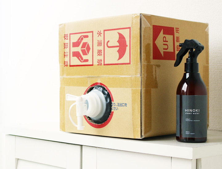 素材:外箱/段ボール、容器/PE、内容液/ヒノキ蒸留水