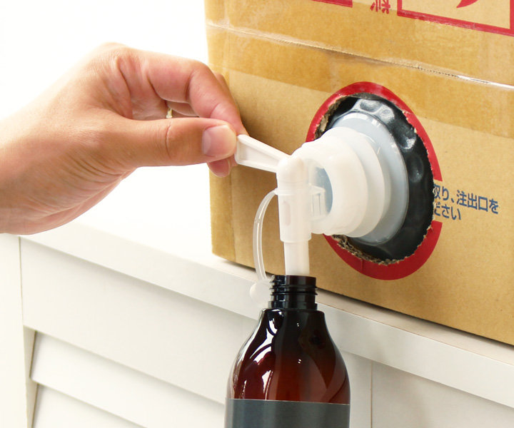 同梱の蛇口を取り付ければコックをひねるだけでボトルへの補充が可能。希釈も不要なので忙しい最中でも手間がかからず素早い補充が行えます。