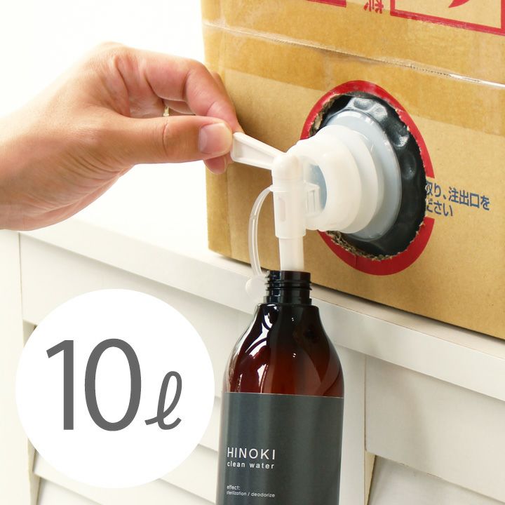 「HINOKI clean water」のボトルの容量が300mlに対してこちらの詰め替えの容量は10Lなので33回ボトルの補充が可能。継続してのご使用であればボトルを買い足すより詰め替えがお値段的にも断然お得。ゴミの排出量も少なく済みます。