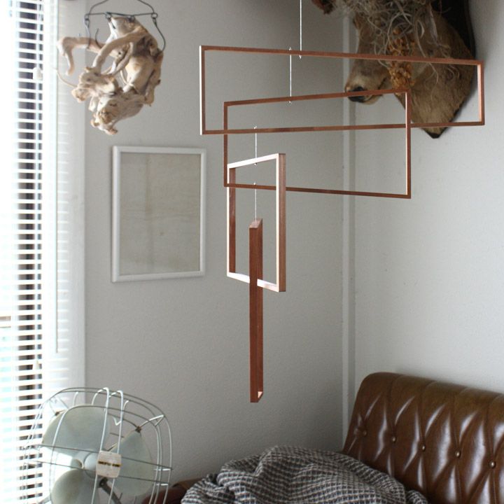 それぞれの間をくぐる木枠が空気の流れでゆっくり動くおしゃれなモビールです。インテリア性も高く眺めるだけでも癒されます。新築祝いのプレゼントとしても喜ばれますよ。