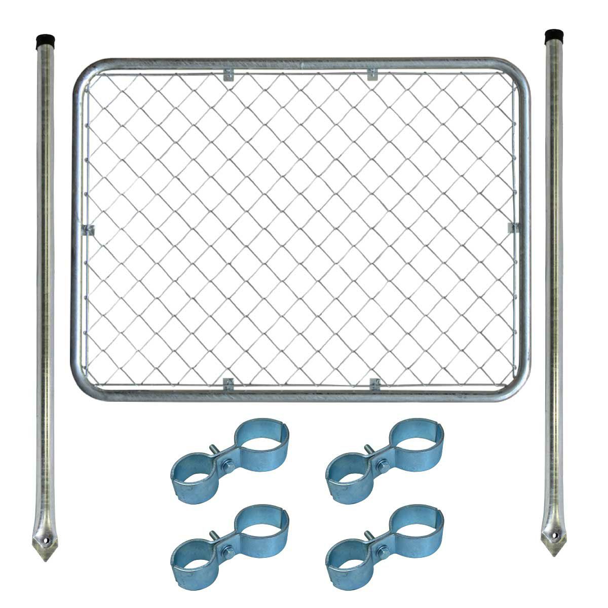 ドッグラン カフェ グランピング 庭 玄関 仕切り 目隠し フェンス かっこいい 金網フェンス ガルバ 「 アメリカンフェンス 柵セットM シルバー ( 1200×900mmフェンス+Φ48.6mm杭2本+ジョイントB4個 ) 」