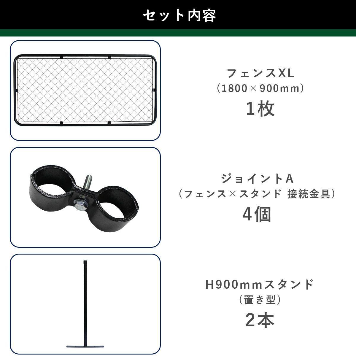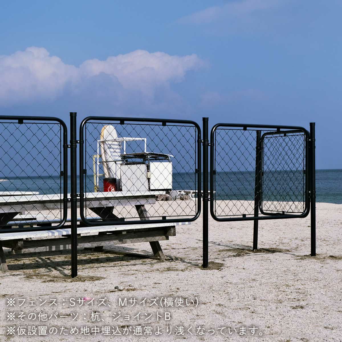 | パーテーションとして使用する場合は「フェンス」「スタンド」「ジョイント」の3点セットがおすすめ! | ||
