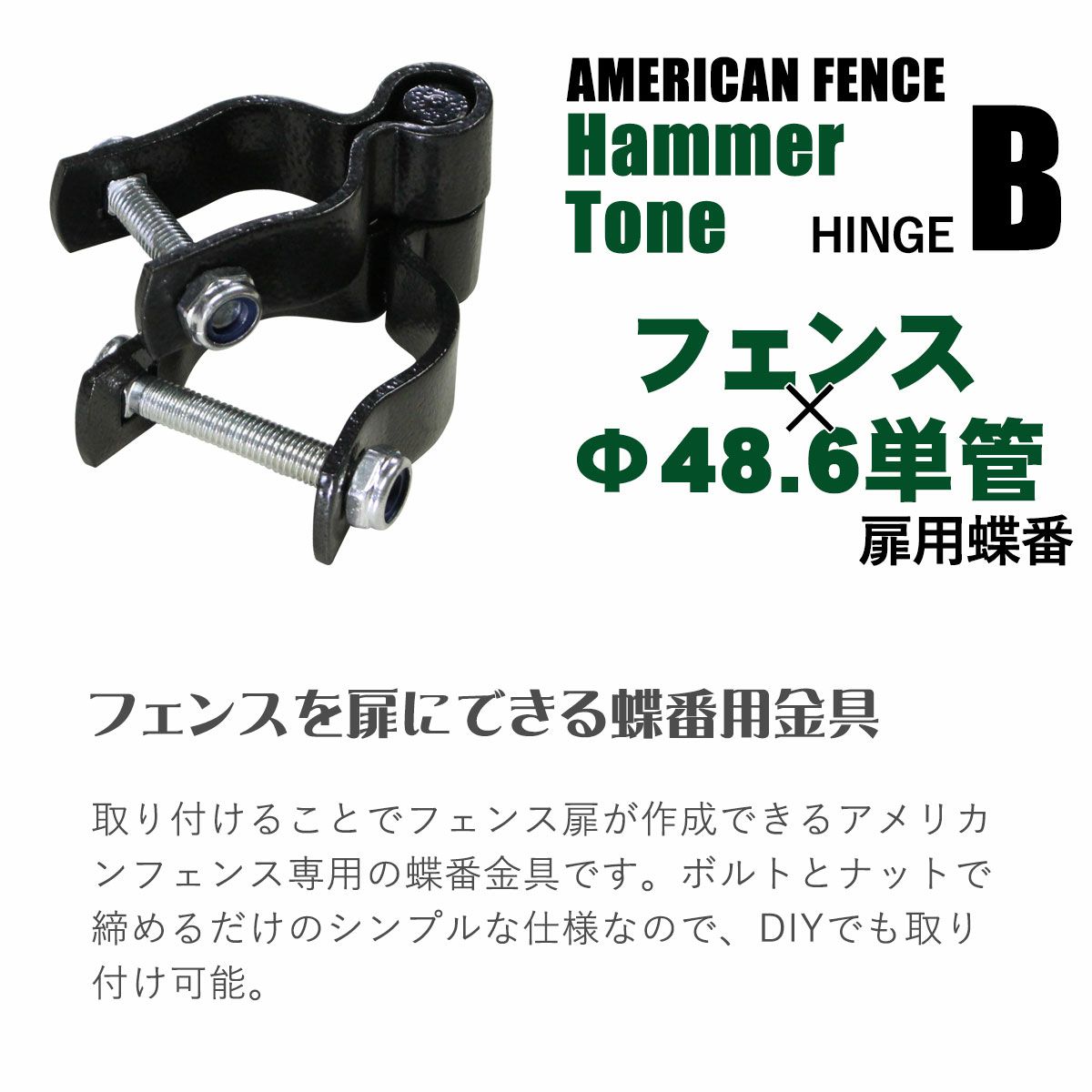 フェンスおしゃれ かっこいい パーテーション ガレージ DIY 金網 柵 留め具 JOINT ブラックハンマートーン 男前 西海岸 フェンス カリフォルニア 「 アメリカンフェンス用連結金具 ジョイントB(Φ48.6用) ハンマートーンブラック 10個セット 」
