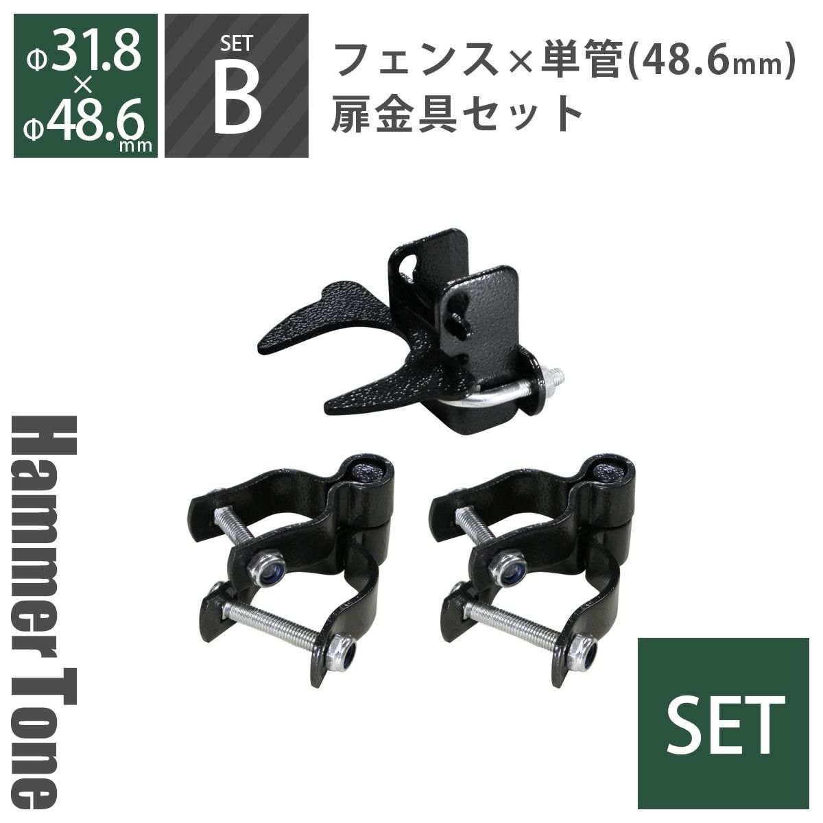 フェンスおしゃれ かっこいい パーテーション ガレージ DIY 金網 柵 かんぬき 掛け金 ハンマートーンブラック 男前 西海岸 フェンス カリフォルニア 「 アメリカンフェンス 扉金具セットB(Φ48.6mm用) ハンマートーンブラック ( ヒンジB2個+ラッチB1個) 」