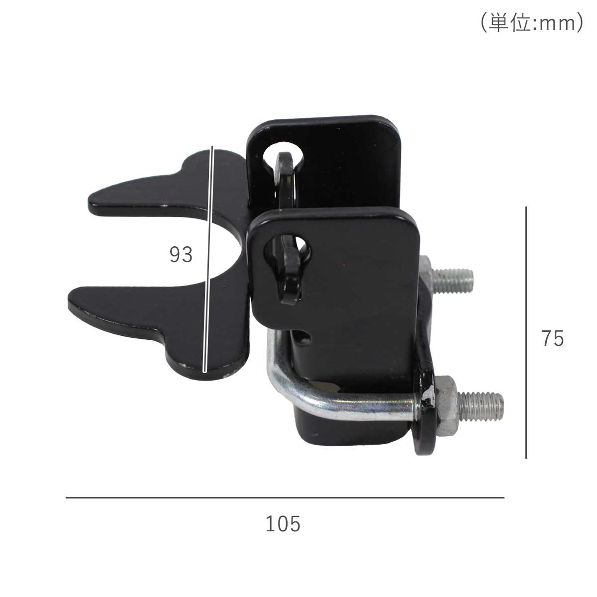 ラッチをフェンスに取り付け、直径31.8mmの支柱を挟み込むように掛金を下ろすだけで扉の固定が出来る簡単仕様で、南京錠でロックすれば掛金を固定することも可能です。