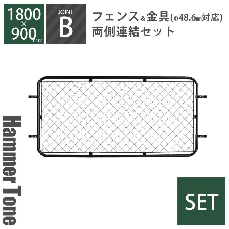 直径48.6mmの支柱に連結できる、ハンマートーンブラックカラーの1800×900mmフェンス&ジョイント金具セットです。