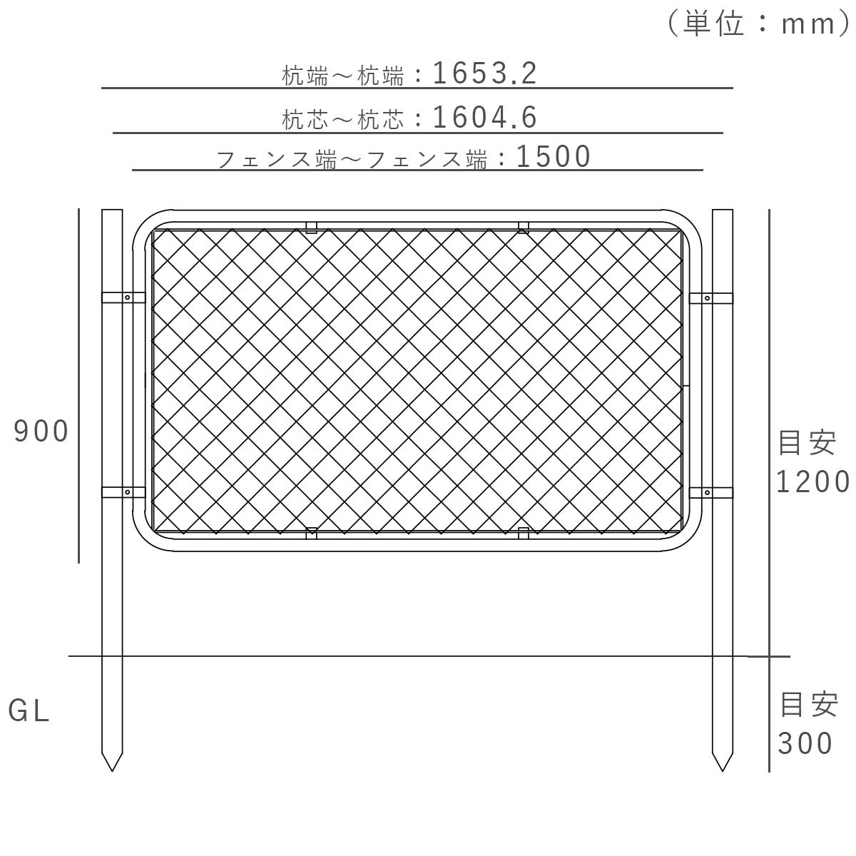 サイズ:W1653.2(杭端~杭端)×H1500(地中埋込含む)mm(個体差あり)